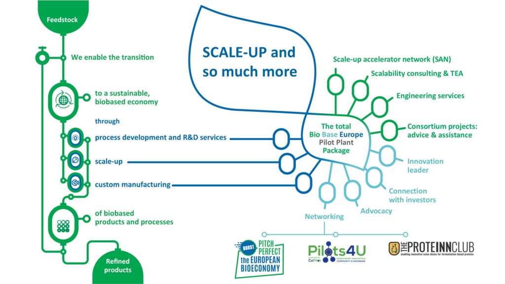 The navigation bar on the the left-hand side of this page guides you through our offer: Core Services from Process Development, over Scale-up to Custom Manufacturing; Additional Services such as our Scale-up Accelerator Network, Scalability Consulting & TEA, Engineering Services, Consortium Project Advice & Assistance; Technologies (Pretreatment, Biocatalysis, Fermentation, Green Chemistry, Product Recovery and Purification and Analytical Capabilities) allowing scale-up and demonstration of innovative biobased processes from lab up to 75,000 L scale; and last but not least Certifications (Quality & Food Safety and CIR). All of this performed in a one-stop-shop on state-of-the-art equipment by a team of highly qualified and experienced engineers and technicians.
